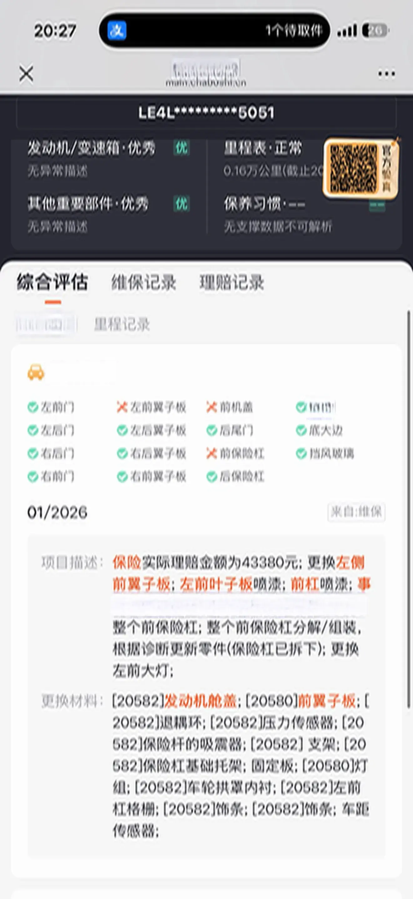 Vehicle Condition:Replaced one light and one fender