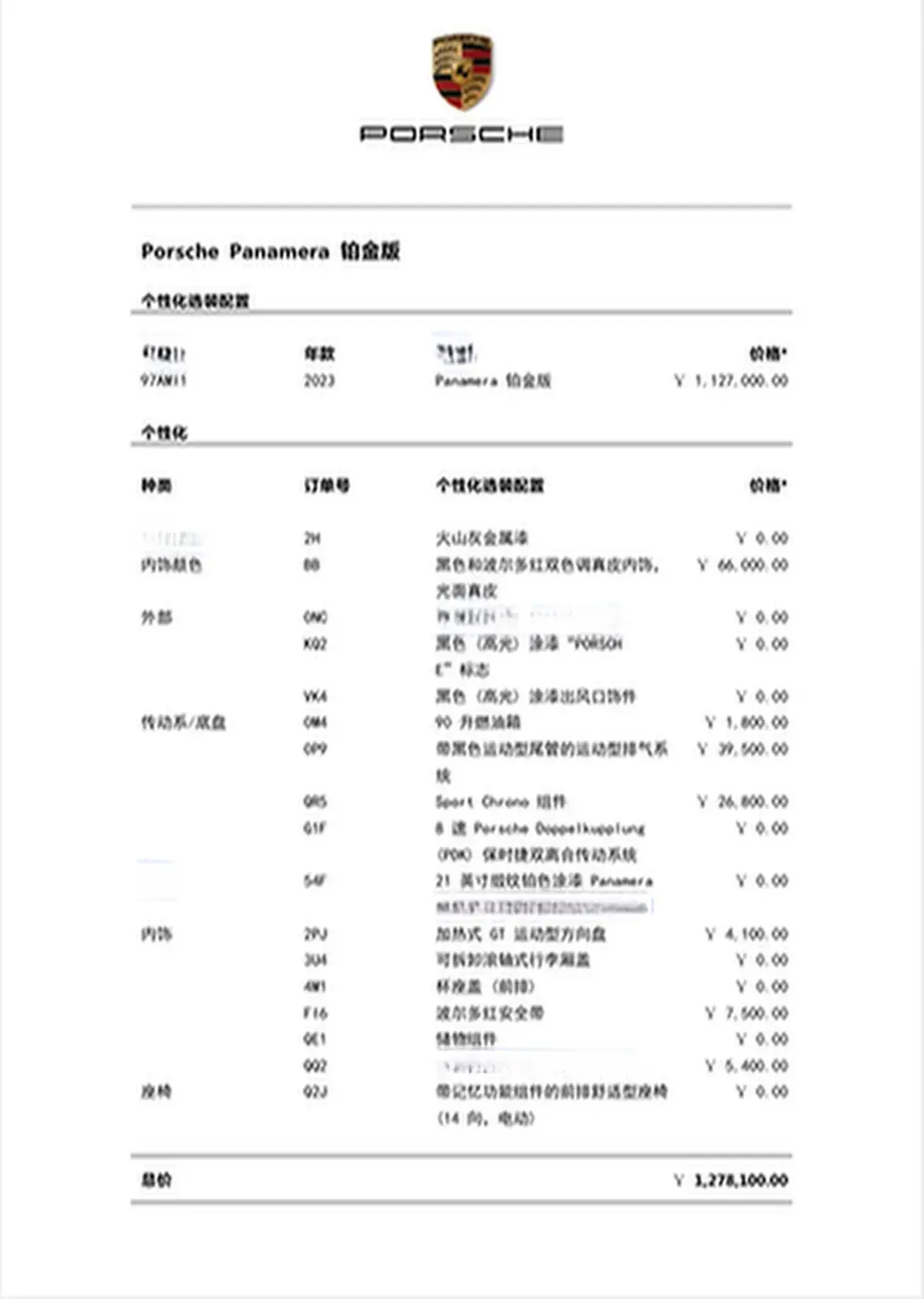 Model:Porsche Panamera 2.9T Platinum Edition