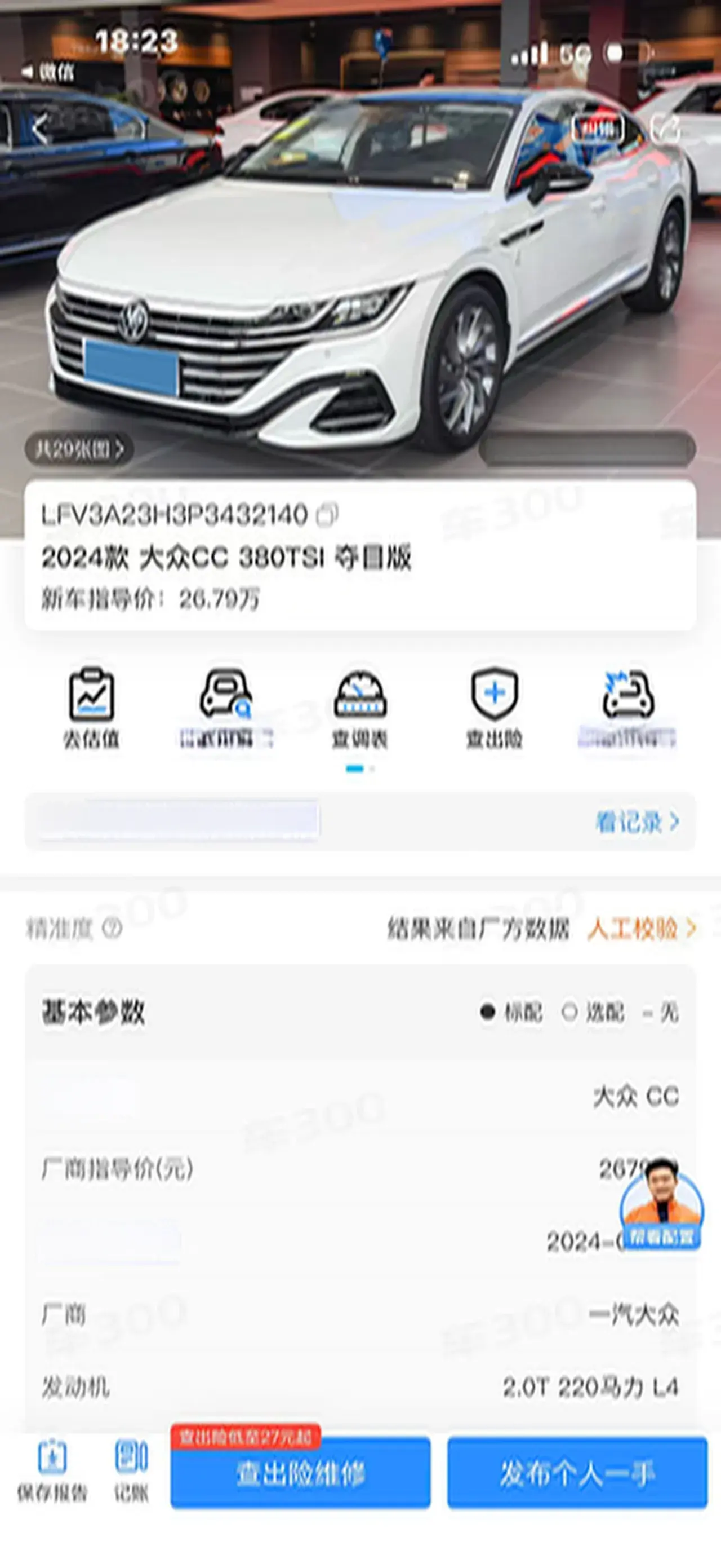 Vehicle Condition:Original paint with right rear door and fender repaired, insurance claim of 3000 yuan.