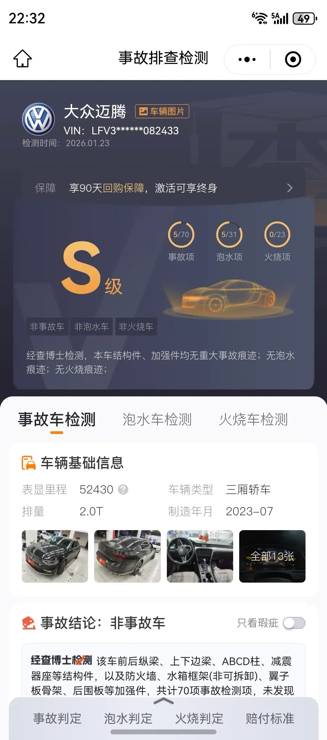 Vehicle Condition:First-hand, left front headlight replaced, left front fender replaced, hood partially repainted, right side partially repainted, actual mileage.