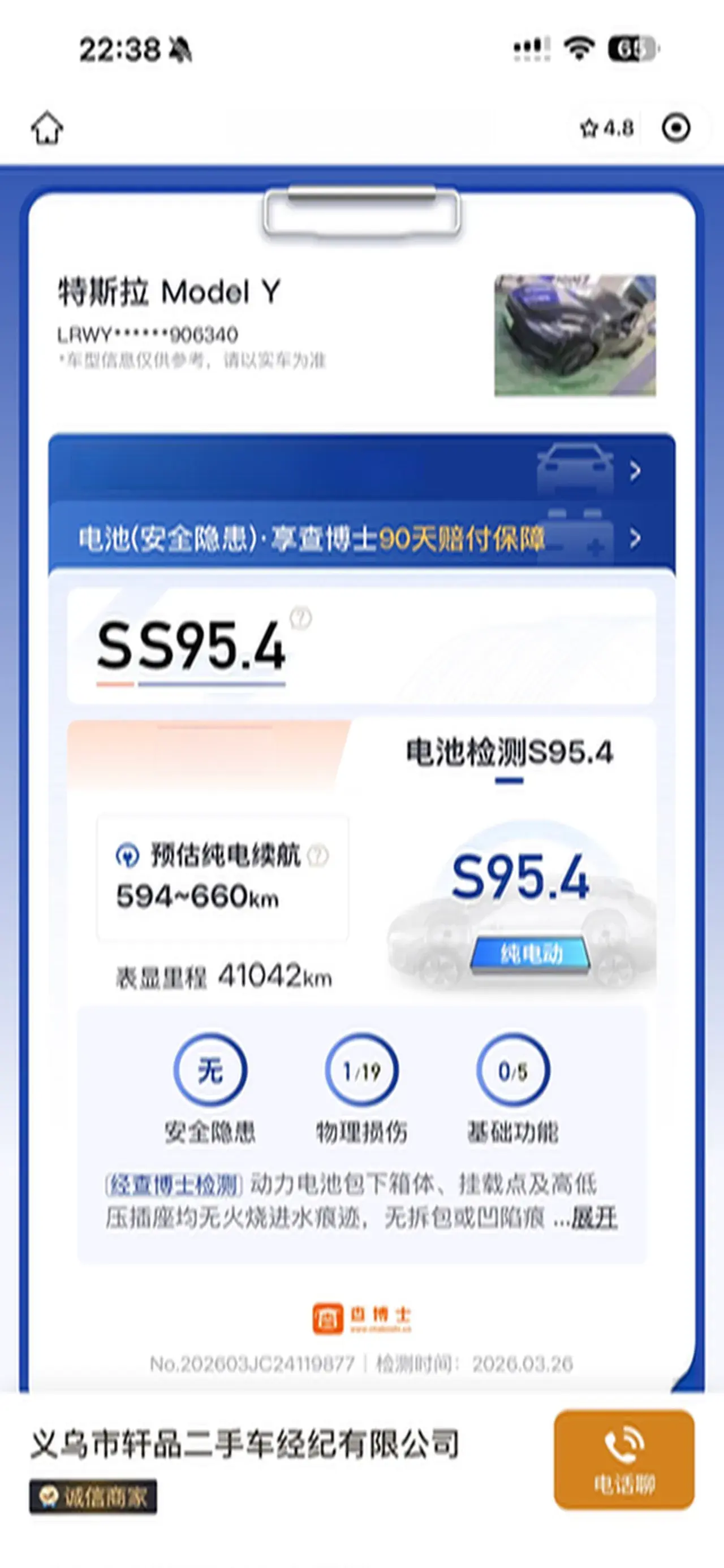 Vehicle Condition:Original version, battery at 95%, three panels repainted